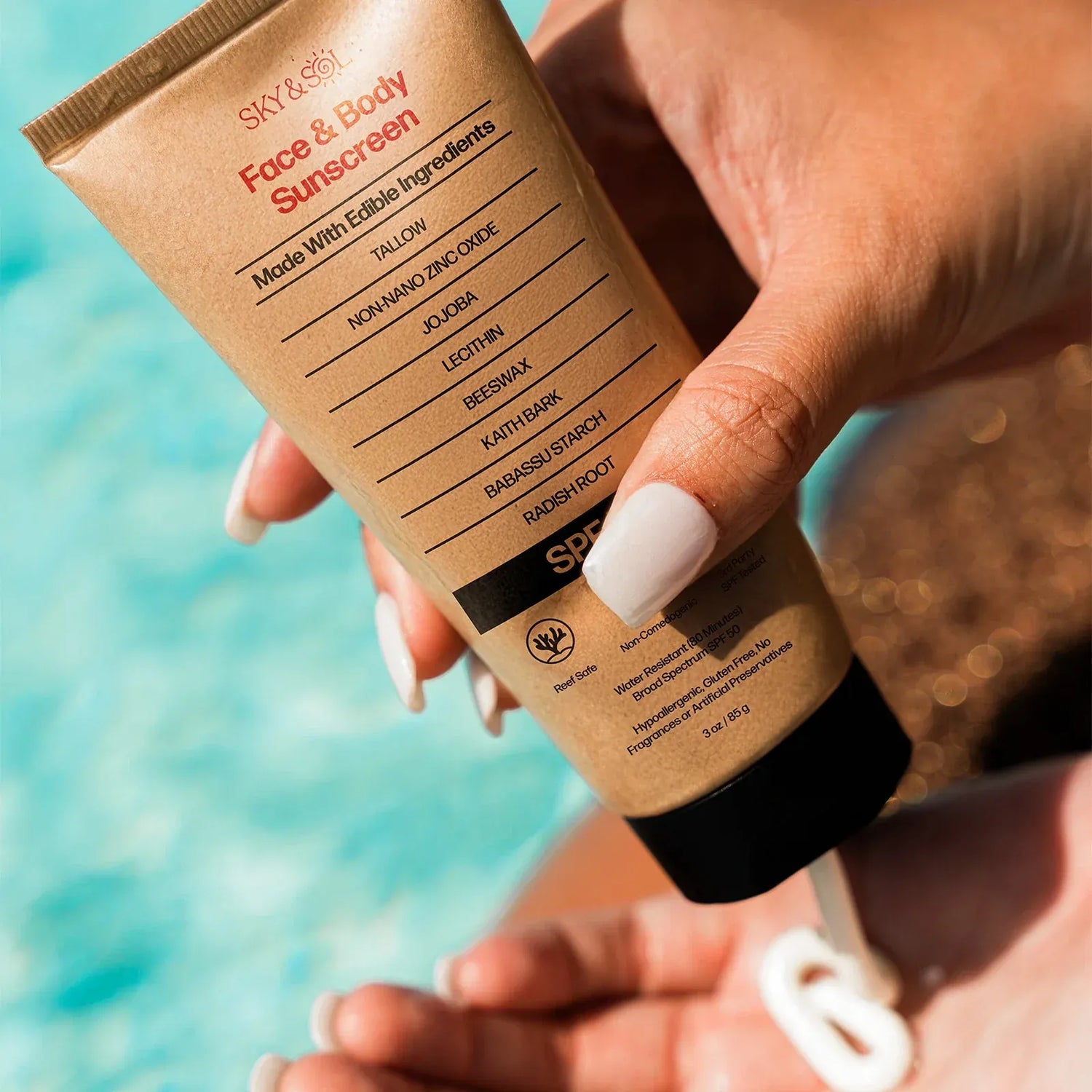 At Sky and Sol, we follow one bold rule: If it’s not safe enough to trust around your body, it has no business on your skin. That’s why we use food-derived, nutrient-rich ingredients—like grass-fed tallow—that your body already loves